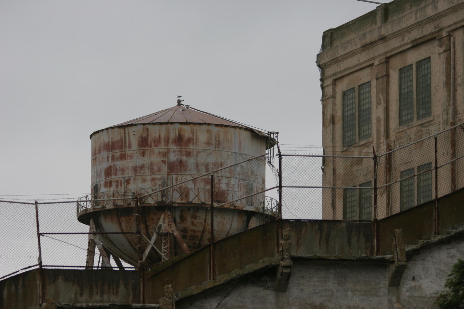 Blick aus dem Innenhof, in dem sich die Gefangenen zeitweise an der fischen Luft aufhalten durften.
