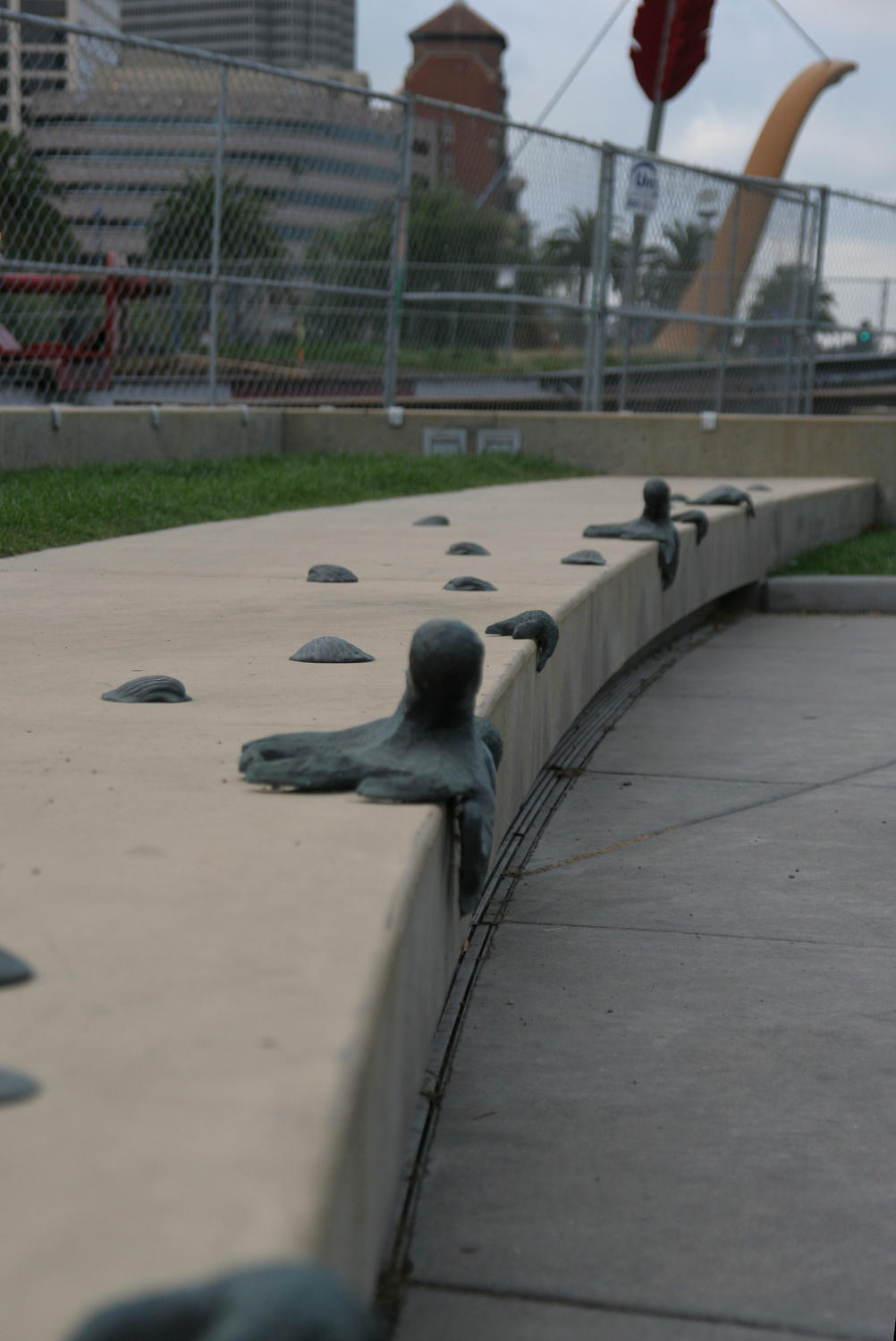 Ja, es sieht ein wenig pervers aus, aber es ist ein Tintenfisch (und ein paar Muscheln). Das ganze ist eine Sitzgelegenheit am Wasser und die eisernen Meerestierchen sollen verhindern, dass Skateboarder etc. über die Sitzfläche fahren.