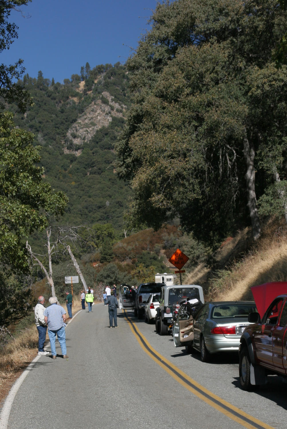 Wegen Arbeiten am Generals Highway behinderte eine Baustelle den Weg in das Herz des Sequoia NP. Jeden Stunde werden hier die Fahrzeuge durchgelassen.
