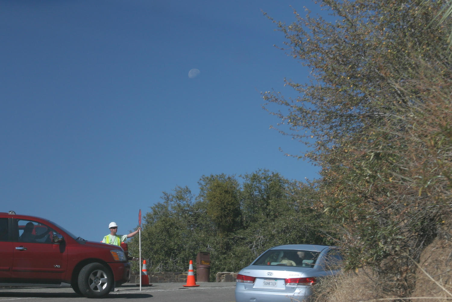 Hier regelt ein Bauarbeiter den Verkehr - keine Ampel