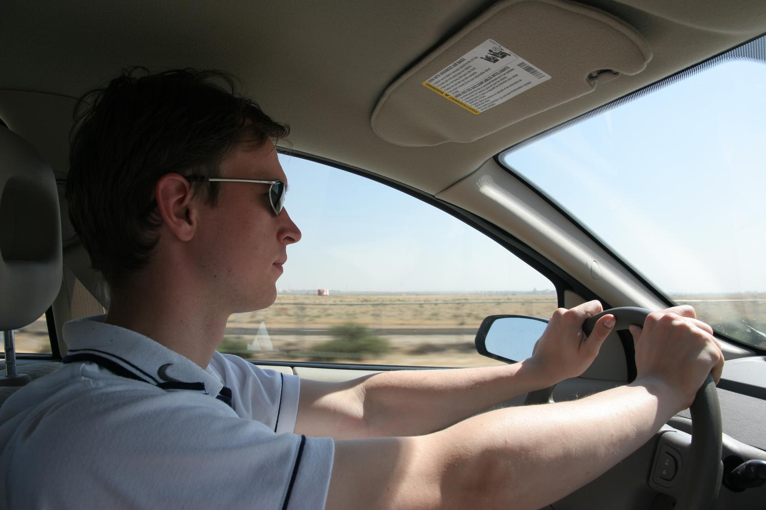 Mehr als 70mph sind eh nicht drin, also kann man ganz entspannt am Lenkrad sitzen. Natürlich vorbildlich beide Hände dran...