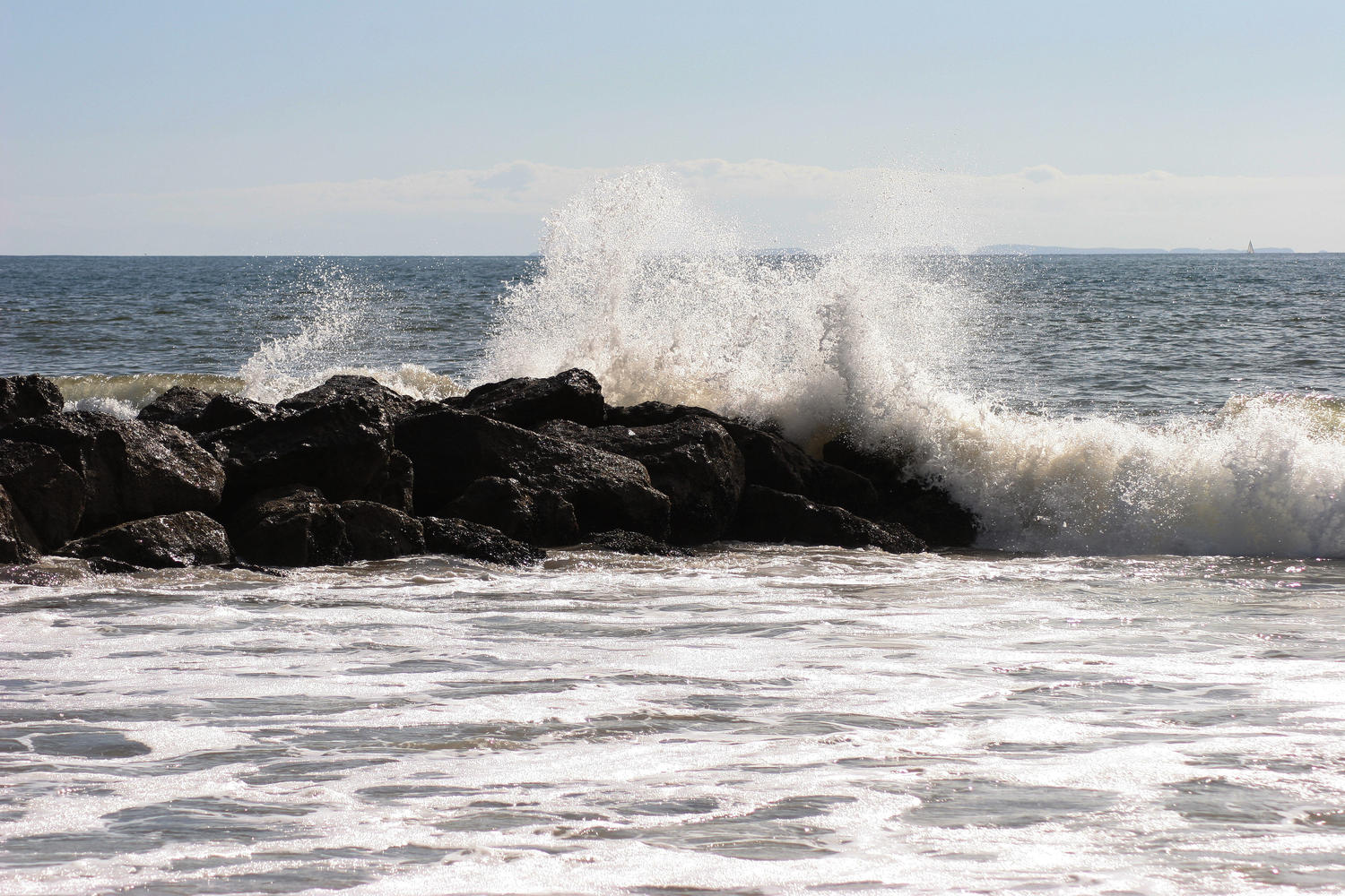 Trotz des schönen Wetters war das Wasser ein wenig aufgewühlt. Im Hintergrund zu erahnen sind die