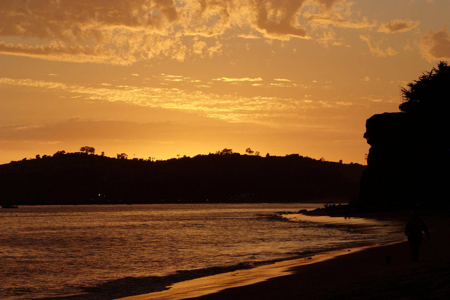 Die Lichter am anderen Ufer gehören zum Santa Barbara Harbor.