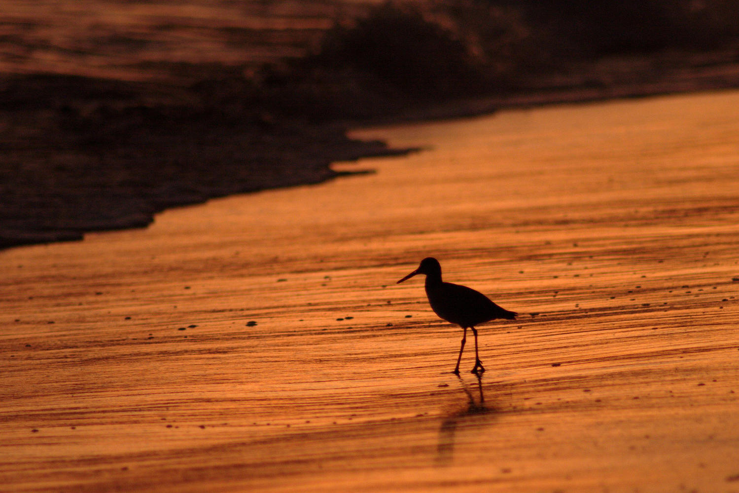 Die Strandläufer nutzen auch das letzte Sonnenlicht.