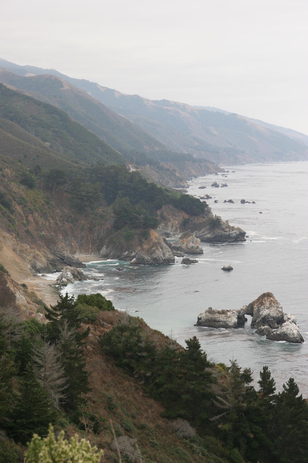 in den Pazifik. Diese Wasserfälle sind nur über den Julia Pfeiffer Burns State Park zu erreichen und verstecken sich auf diesem Foto leider hinten den Felsen.