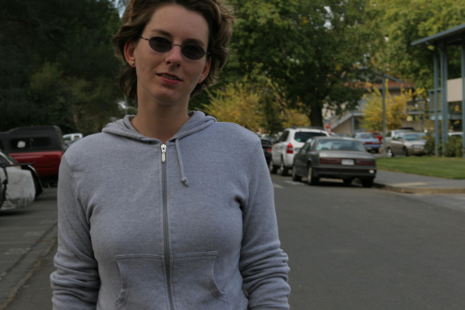 Manu guckt Markus komisch an, weil er ihr im Weg steht.